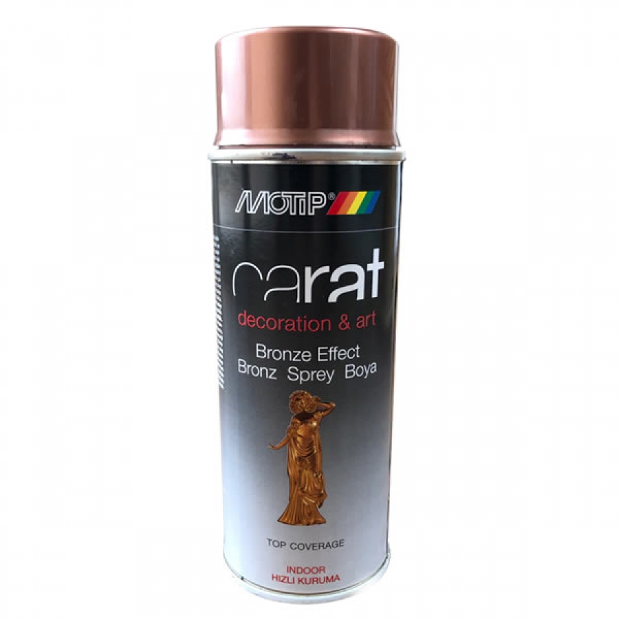 Motip Carat sprey boyaları , hızlı kuruyan akrilik esaslı yüksek örtücülüğe sahip ahşap, metal, tekstil, kağıt ve boyanabilir plastik yüzeylerde güvenle kullanabileceğiniz dekoratif sprey boyalardır.